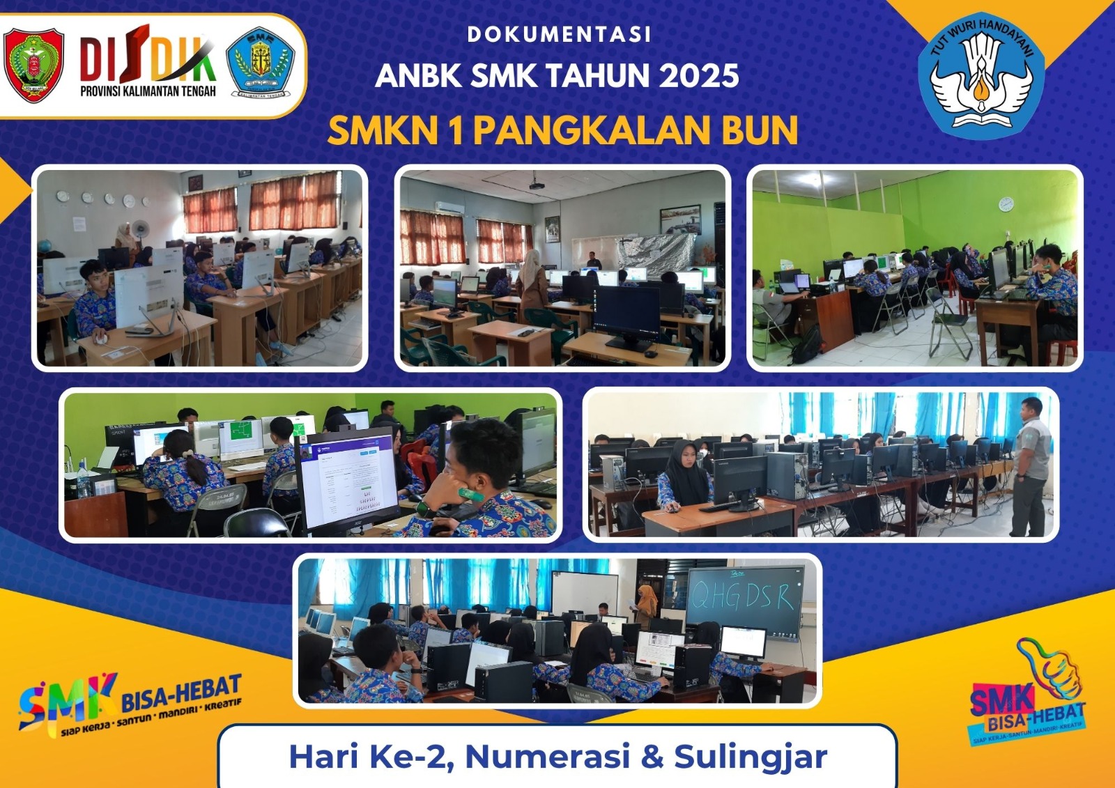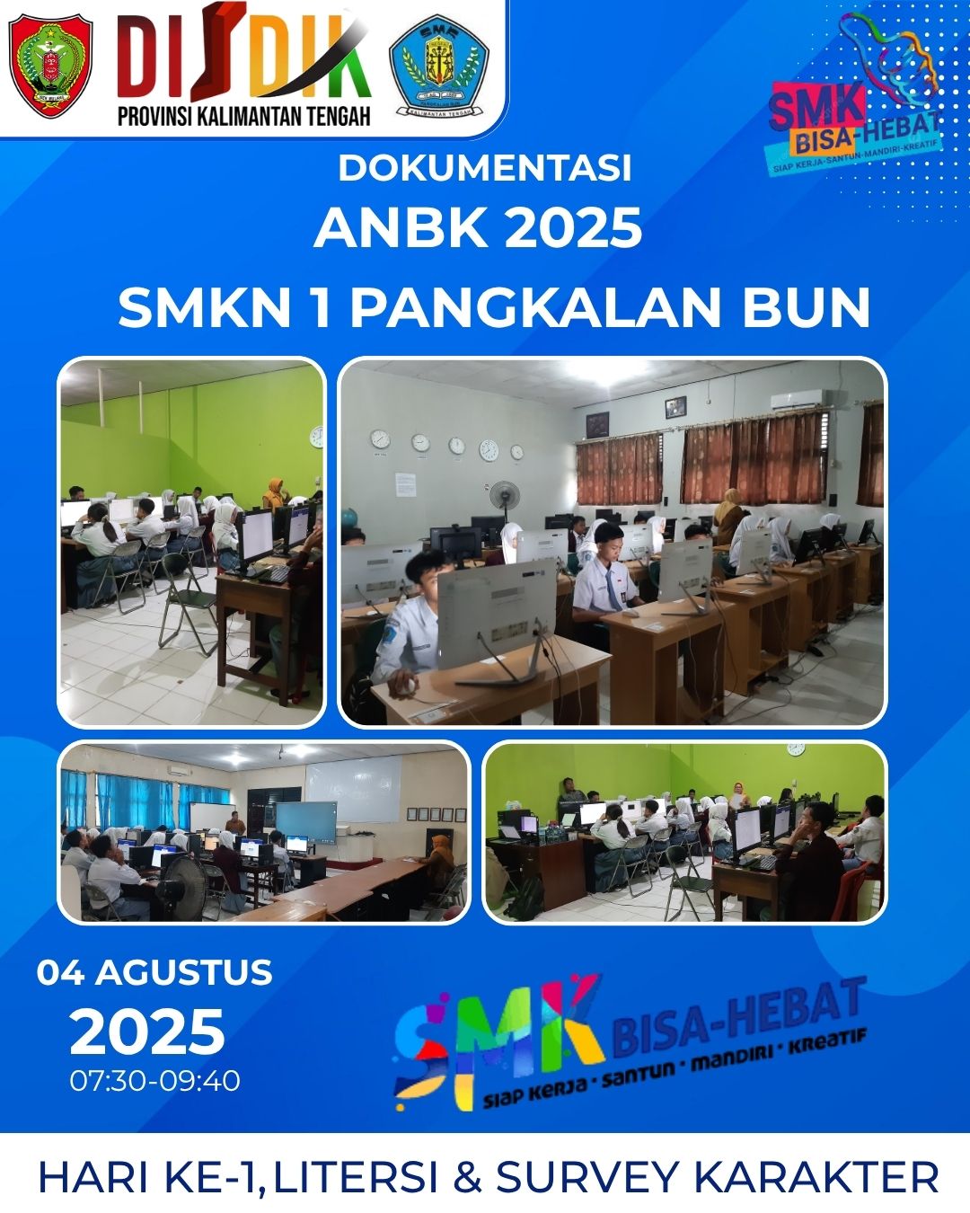 Pelaksanaan ANBK di SMK Negeri-1 Pangkalan Bun tahun 2025 berjalan dengan lancar baik Hari ke 1 dan Hari ke 2, semua ini berkat bantuan dari Bapak Gubernur H. Agustiar Sabran, Bapak Plt. Kepala Dinas Pendidikan Muhammad Reza Prabowo, S. IP., M.PA yang telah memberikan bantuan pada SMK Negeri-1 Pangkalan Bun berupa starlink, Panel surya sehingga SMK Negeri-1 Pangkalan Bun dapat melaksankan ANBK dengan Lancar. Dengan adanya Starlink akses internet di sekolah kami menjadi lancar saat digunakan ANBK, serta dengan adanya panel Surya kami tidak takut jika terjadi pemadaman listrik. Semoga Kalimantan Tengah semakin berkah.